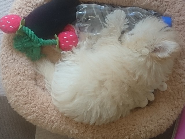ポメプーのくりんは、被毛がモコモコで暑さには弱い様子。