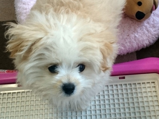 ポメラニアンのお母さんとトイプードルのお父さんから生まれたポメプーくりんは、