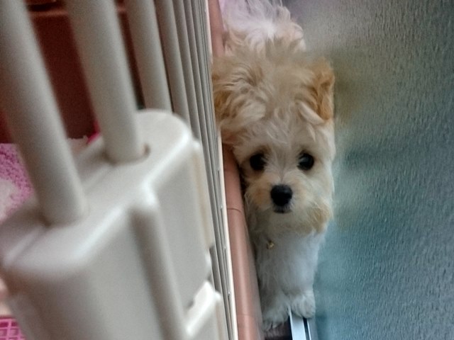 くりんは、ケージの後ろの隙間に潜り込みたがります(笑