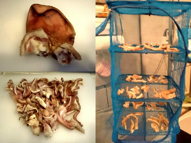 豚の耳 ⓷ごはん・おやつ ❤️昔のくりん 2015.08.19 2025.07.22 くりん用に「鶏膝軟骨」をネットでお取り寄せするついでに豚の耳も購入。 豚耳ジャーキーを作ることにしました。 おすわりくりん。 豚の耳・・・でかくてビックリ! 写真だとわかりにくいけど、縦20cmくらいあります。 豚耳ジャーキー。 とりあえず、冷凍でカチカチなので、茹でて、適当に切って、 脂分が出そうだったので、更に茹でてから、天日干し。 しかし、この量・・・くりん、食べきれないよね(笑 ベリシャス 豚の耳 8枚 posted with amazlet at 15.08.19 アスク 売り上げランキング: 1,985 Amazon.co.jpで詳細を見る 豚耳