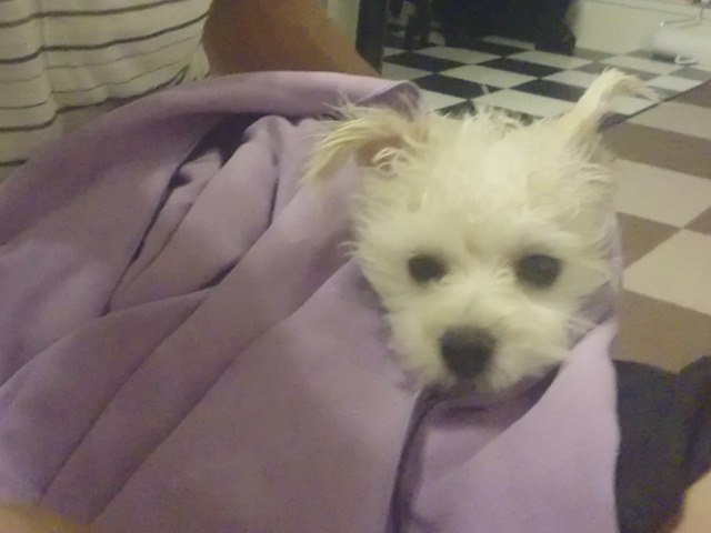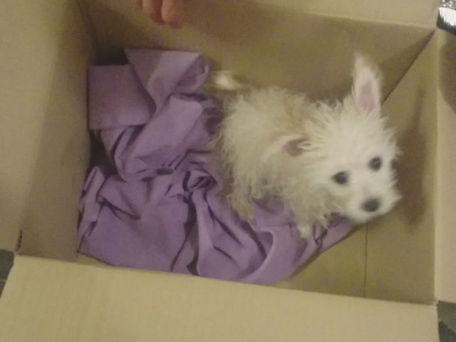 シャンプー後は、段ボールの中で、バサバサッとしてもらって時間短縮。