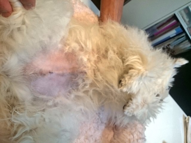 傷口の様子 ⓸ケア・しつけ ❤️昔のくりん 2015.09.20 2025.07.22 術後服を脱いでみました。 なんだかモコモコ度がアップしているような? 服を脱いだらもっこもこでした。 体重を測ったら2420g 晩ごはん後だけど、それにしても重くなってる!! 傷口の様子を撮影してみました。 傷口撮影。わかりにくいね。 う~ん、よくわかりませんね。 とりあえず、テープかぶれで赤くなっていたのは、落ち着いた様子。 ということで、傷口アップ。 傷口拡大!糸がチョンチョンって感じです。 もう術後服なくても平気かな~? 去勢手術術後