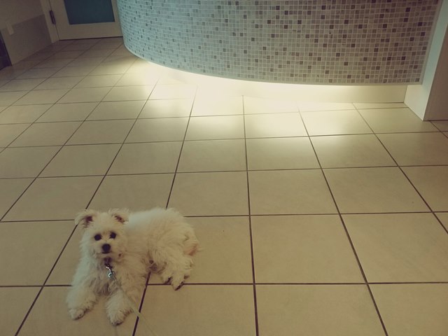 動物病院の待合室にて。