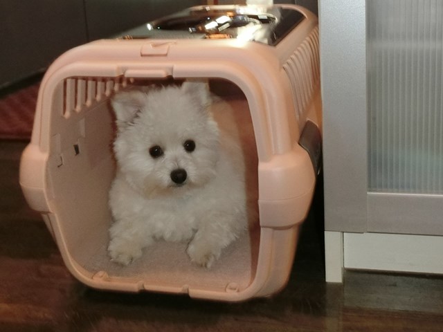 ちょっとお尻を押し込んで、扉を閉めてクレートイン成功!